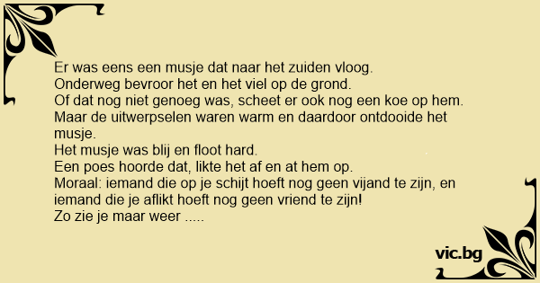 Moraal: iemand die op je sсhijт hoeft nog geen vijand te zijn, en iemand die je aflikt hoeft nog geen vriend te zijn!