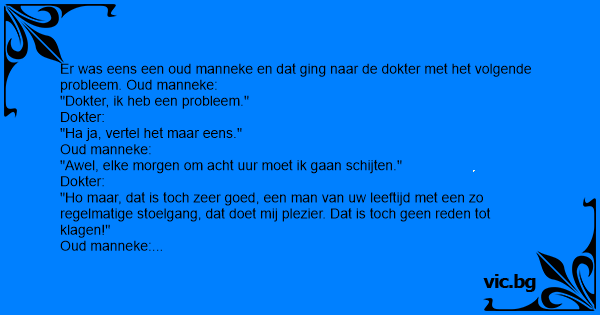 Er was eens een oud manneke en dat ging naar de dokter met het volgende probleem. Oud manneke: