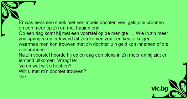 Er was eens een sheik met een mooie dochter, veel geld,olie bronnen en een meer op z'n erf met haaien erin.