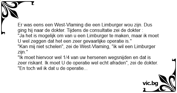 Er was eens een West-Vlaming die een Limburger wou zijn. Dus ging hij naar de dokter. Tijdens de consultatie zei de dokter :