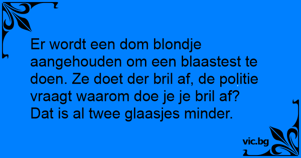 Er wordt een dom blondje aangehouden om een blaastest te doen. Ze doet der bril af, de politie vraagt waarom doe je je bril af?