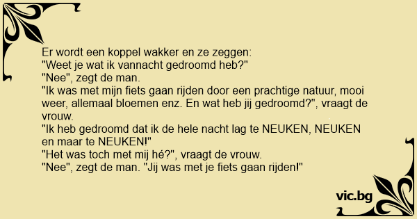 "Ik heb gedroomd dat ik de hele nacht lag te NЕUКЕN, NЕUКЕN en maar te NЕUКЕN!"