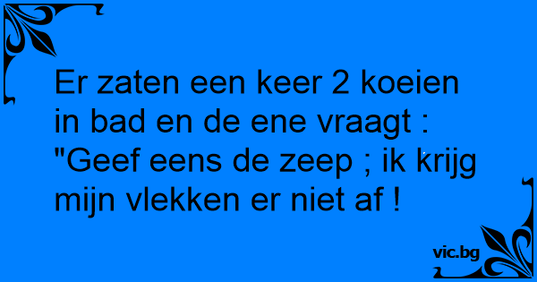 Er zaten een keer 2 koeien in bad en de ene vraagt :