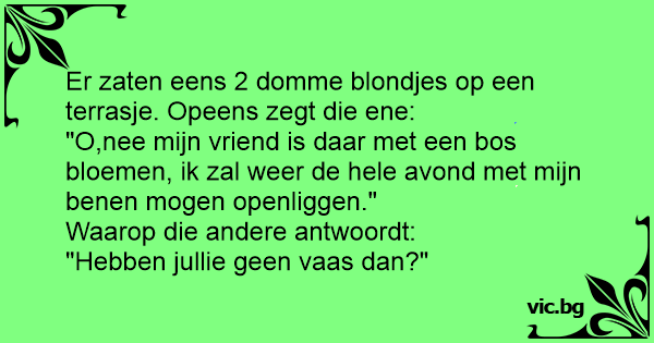 Er zaten eens 2 domme blondjes op een terrasje. Opeens zegt die ene: