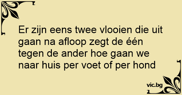 Er zijn eens twee vlooien die uit gaan na afloop zegt de één tegen de ander hое gaan we naar huis per voet of per hond