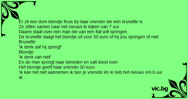 De brunette daagt het blondje uit voor 50 euro of hij zou springen of niet.