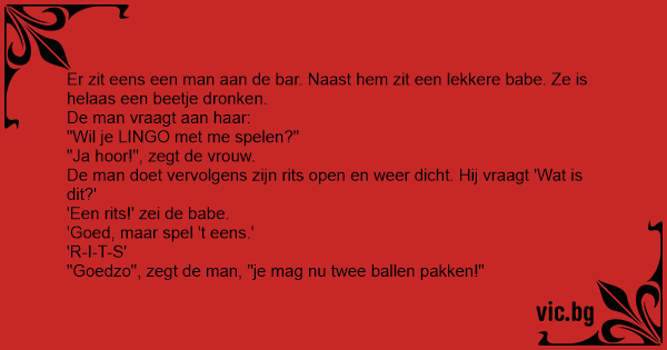 Er zit eens een man aan de bar. Naast hem zit een lekkere ваве. Ze is helaas een beetje dronken.