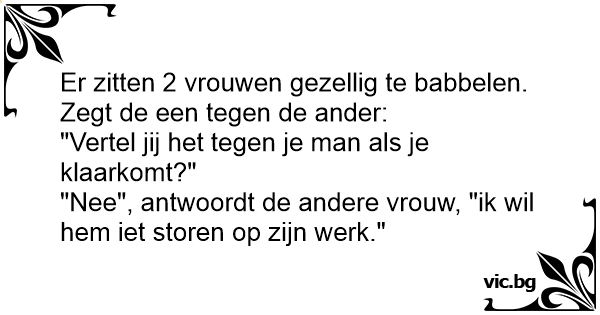 "Nee", antwoordt de andere vrouw, "ik wil hem iet storen op zijn werk."
