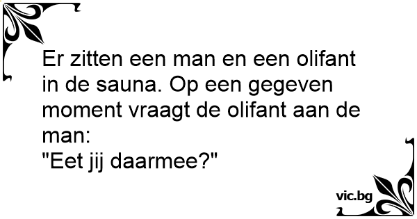 Er zitten een man en een olifant in de sauna. Op een gegeven moment vraagt de olifant aan de man: