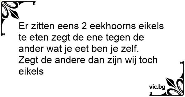 Er zitten eens 2 eekhoorns eikels te eten zegt de ene tegen de ander wat je eet ben je zelf.