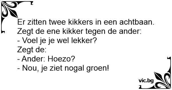Er zitten twee kikkers in een achtbaan. Zegt de ene kikker tegen de ander: