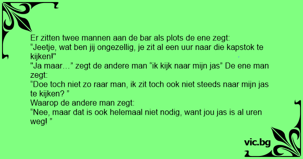 "Ja maar…” zegt de andere man “ik kijk naar mijn jas” De ene man zegt:
