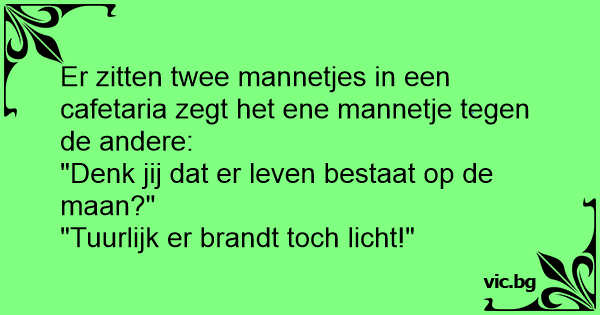 Er zitten twee mannetjes in een cafetaria zegt het ene mannetje tegen de andere: