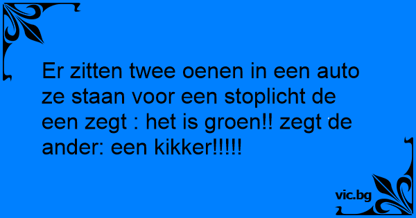Er zitten twee oenen in een auto ze staan voor een stoplicht de een zegt : het is groen!! zegt de ander: een kikker!!!!!