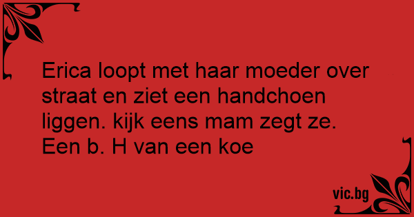 Erica loopt met haar moeder over straat en ziet een handchoen liggen. kijk eens mam zegt ze. Een b. H van een koe