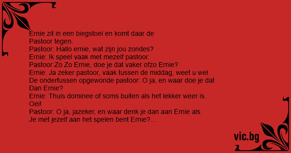 Ernie: Ik speel vaak met mezelf pastoor.