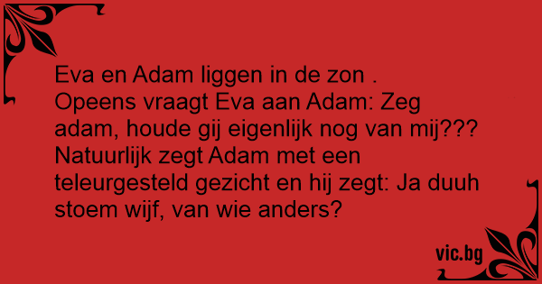 Opeens vraagt Eva aan Adam: Zeg adam, houde gij eigenlijk nog van mij???