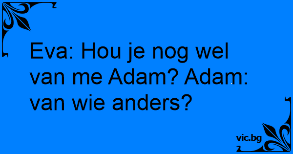 Eva: Hou je nog wel van me Adam? Adam: van wie anders?