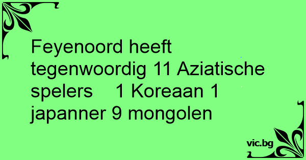 Feyenoord heeft tegenwoordig 11 Aziatische spelers 1 Koreaan 1 japanner 9 mongolen