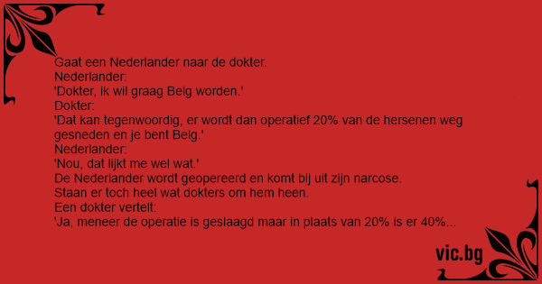 'Ja, meneer de operatie is geslaagd maar in plaats van 20% is er 40% weggesneden.
