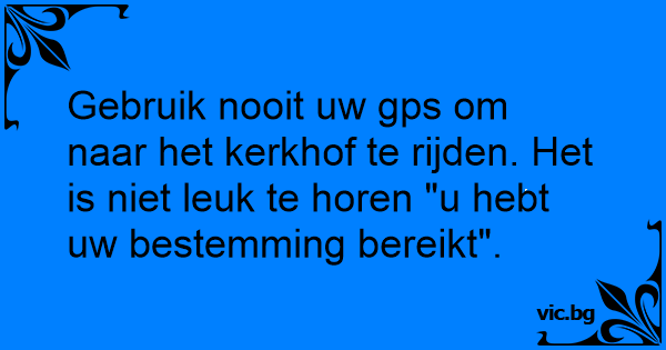 Gebruik nooit uw gps om naar het kerkhof te rijden. Het is niet leuk te horen "u hebt uw bestemming bereikt".