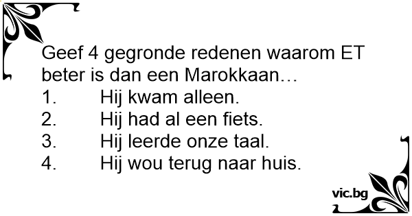 Geef 4 gegronde redenen waarom ET beter is dan een Marokkaan…