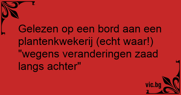 Gelezen op een bord aan een plantenkwekerij (echt waar!) "wegens veranderingen zaad langs achter"