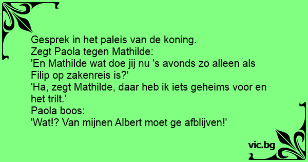 'En Mathilde wat doe jij nu 's avonds zo alleen als Filip op zakenreis is?'
