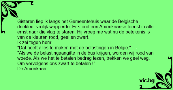 "Als we de belastingaangifte in de bus krijgen, worden wij rood van woede. Als we het te betalen bedrag lezen, trekken we geel weg. Om vervolgens ons zwart te betalen !"