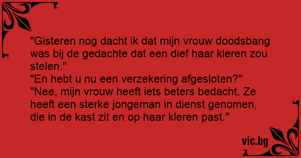 "Gisteren nog dacht ik dat mijn vrouw doodsbang was bij de gedachte dat een dief haar kleren zou stelen."