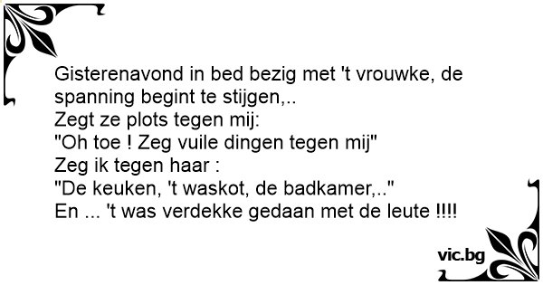Gisterenavond in bed bezig met 't vrouwke, de spanning begint te stijgen,..