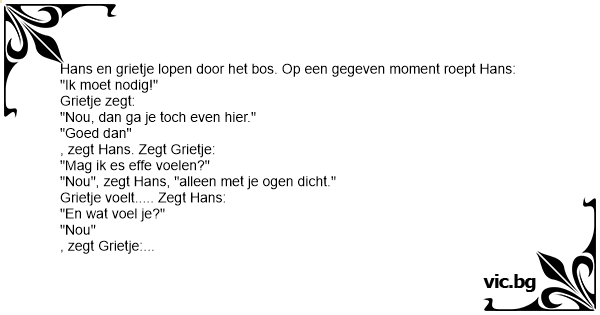 Hans en grietje lopen door het bos. Op een gegeven moment roept Hans: