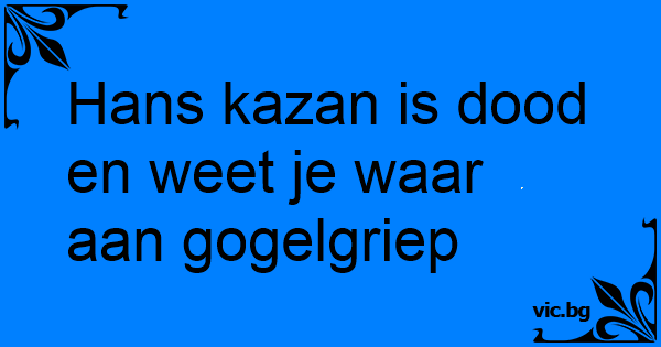 Hans kazan is dood en weet je waar aan gogelgriep