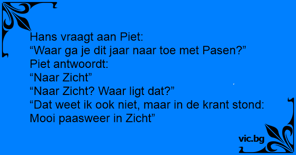 “Dat weet ik ook niet, maar in de krant stond: Mooi paasweer in Zicht”