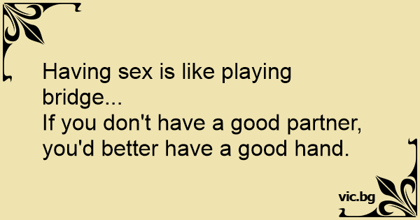 Разговараат двајца пријатели: - Сексот е исто како бриџ. - ??? - Ако немаш добар партнер, тогаш подобро е да имаш добра рака.