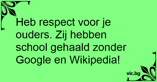 Heb respect voor je ouders. Zij hebben school gehaald zonder Google en Wikipedia!