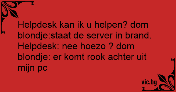 Helpdesk kan ik u helpen? dom blondje:staat de server in brand. Helpdesk: nee hoezo ? dom blondje: er komt rook achter uit mijn pc