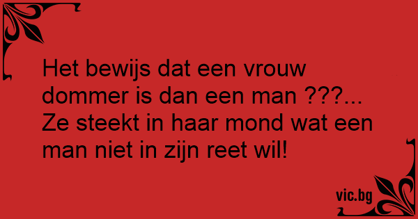 Het bewijs dat een vrouw dommer is dan een man ???... Ze steekt in haar mond wat een man niet in zijn rеет wil!