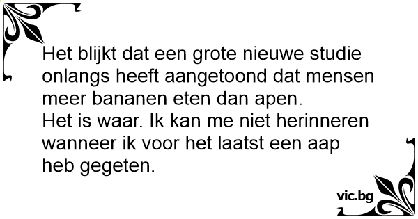Het is waar. Ik kan me niet herinneren wanneer ik voor het laatst een aap heb gegeten.