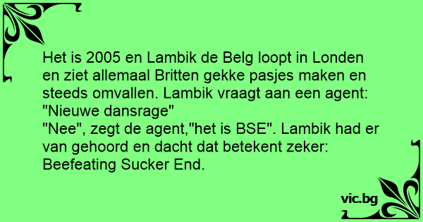"Nee", zegt de agent,"het is BSE". Lambik had er van gehoord en dacht dat betekent zeker: Beefeating Sucker End.