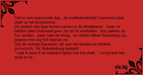 *Het is een spannende dag , de voetbalwedstrijd Feyenoord-Ajax staat op het programma...
