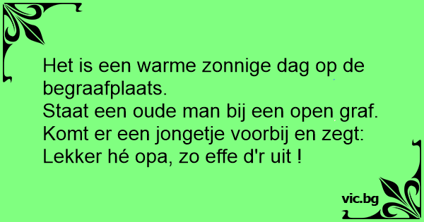 Komt er een jongetje voorbij en zegt: Lekker hé opa, zo effe d'r uit !