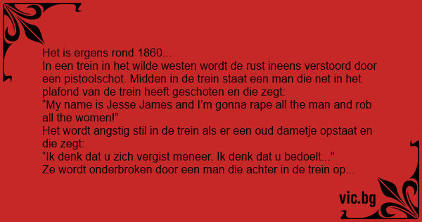 Het wordt angstig stil in de trein als er een oud dametje opstaat en die zegt: