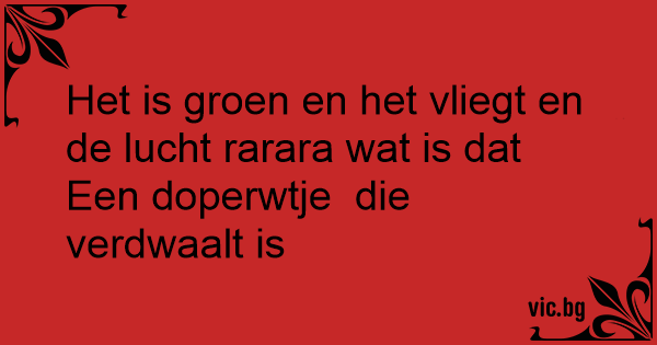 Het is groen en het vliegt en de lucht rarara wat is dat