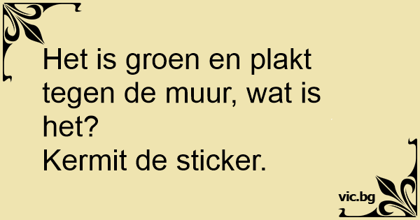 Het is groen en plakt tegen de muur, wat is het? Kermit de sticker.
