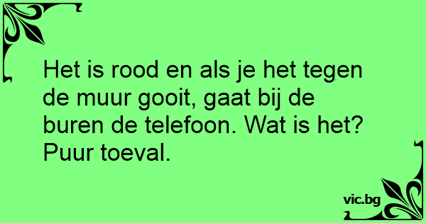 Het is rood en als je het tegen de muur gooit, gaat bij de buren de telefoon. Wat is het?