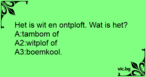Het is wit en ontploft. Wat is het?