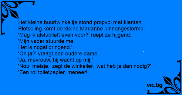 'Nou, meisje,' zegt de winkelier, 'wat heb je dan nodig?'
