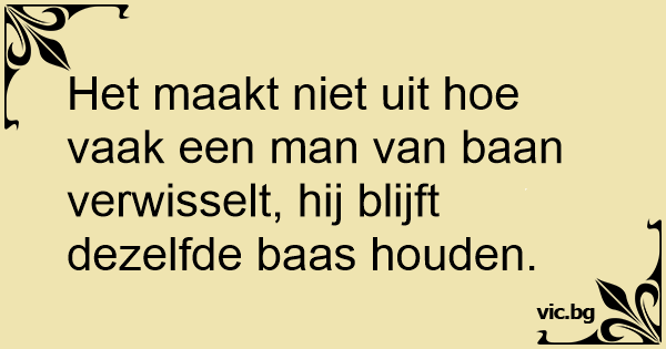 Het maakt niet uit hое vaak een man van baan verwisselt, hij blijft dezelfde baas houden.