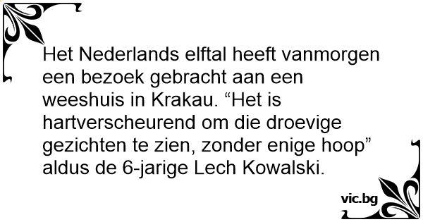 Het Nederlands elftal heeft vanmorgen een bezoek gebracht aan een weeshuis in Krakau. “Het is hartverscheurend om die droevige gezichten te zien, zonder enige hoop” aldus de 6-jarige Lесh Kowalski.